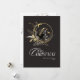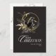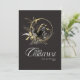 The background of the card depicts a mystical forest with moon, deer where the trees are adorned with golden decorations, and the ground is covered in a blanket of glistening snow. The black and gold colour palette adds a touch of sophistication and luxury to the overall design, making it stand out among traditional holiday cards.