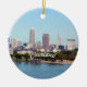 Classic lake skyline view of Cleveland, Ohio featured on ornament . Nice idea for hometown pride!
