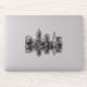 This black ink skyline of Cleveland, Ohio highlights architecture of the city with a self reflection.