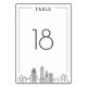 A unique wedding table number cards for a marriage taking place in the beautiful city of Cleveland, Ohio. It features a simplified table number resting above a stylised version of the famous city's unique skyline.