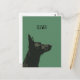 This solid green postcard features a black Derman-shepherd illustration accompanied with the customisable "clever" text.