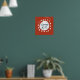 A bold red background features the phrase "clever girl" at the centre, enclosed by a ring of white dots surrounding a larger white oval. The playful and simplistic design emphasizes the central message.