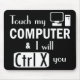 Clever If you touch my computer I will Cut You Typography mouse pad. Text in white reads If you touch my computer I will Ctrl X (cut) you. Funny computer technology office mouse pad. Clever gift for computer programmers. Geek humour. Black background, customise it to change background colour.
