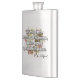 The product is a good size and came exactly as it was pictured. The lid is not attached to the flask, which could be dangerous on drunken nights... The print came out surprisingly well and looks very sharp. Would definitely recommend.
