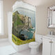 This beautiful shower curtain has a beautiful cliff and ocean scene on it.