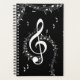G Clef among white notes of music on black. The black background makes the bright white notes pop.