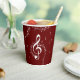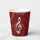 G Clef among notes of music on a deep red. The dark red background makes the bright white notes pop. White and maroon music design,