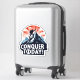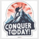 This sticker features a triumphant mountain climber reaching the peak, with the motivational message "Conquer Today!" Perfect for water bottles, laptops, notebooks, or anywhere you need a reminder to push yourself and achieve your goals.