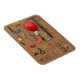 Rock climbing creates an interesting still life on this magnet. Featuring a red mountaineering helmet, ice axe, and a variety of colourful carabiners and other equipment. Ideal for anyone who loves adventure and the great outdoors.