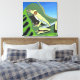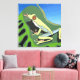 This colourful canvas features my simple design of a green tree frog on a jungle leaf against bright blue sky. Perfect to cheer up a plain wall or a lovely gift for a frog lover.