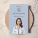 A stylish minimal employee ID name badge with classic typography on a clean simple minimalist soft pastel blue background. The text, logo and QR code can be easily customised for a professional touch to match your clinic branding and blend well into a medical professional setting. A simple, minimalist and contemporary design for a hospital, clinical or medical setting.