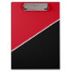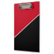 This clipboard is shown in a modern colour block design in colours of black and red.