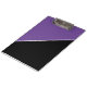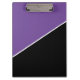 This clipboard is shown in a modern colour block design in colours of Black and Purple.