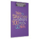 Absolute masterpiece. Got this clip board as a Christmas gift for my coach and it turned out AMAZING and is dry-erase. Designed it using canvas and adobe and it looked exactly like the picture. It came late although I paid for express shipping because it was around Christmas time. #10000 percent would recommend again. I couldn’t upload a photo of the front but my design is attached without the wording. .
