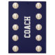 This clipboard is a unique and fun thank you gift for the baseball team coach! The navy blue background with white lettering is very bright and eye catching. It is decorated with white baseballs with red stitching. On the front, sample text has room for 3 lines, which can easily be modified or deleted. The back is Navy Blue with baseballs and the word "COACH". The word COACH on back can easily be modified or deleted. Your baseball team coach will love it! A great "Thank You" from the team. All Rights Reserved © 2014 Alan & Marcia Socolik.