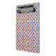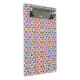 Clipboard with vibrant geometric pattern of orange, blue, and pink diamond shapes. The front has a metal clip; back features the same colorful design.