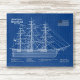 Measuring roughly 225 feet in length and displacing about 1,782 tons, the Flying Cloud combined size, strength, and speed in a beautifully balanced design. This poster-style blueprint captures both the technical sophistication and historical significance of one of the most celebrated sailing ships ever built.