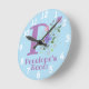 I bought the clock as a 'first time' grandmother. When I opened the package, I cried. the workmanship, material, color and the opportunity to personalize it was just perfect. I know that my grandson will be able to quickly learn to identify numbers, count and tell time! What a keepsake! I was totally happy with the printing, color choice and overall presentation of the clock!