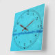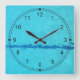 Aqua water with sun highlighting ripples. Dark blue line at bottom of pool is distorted. Black numerals are surrounded by segmented ring marking the minutes. Great gift for the swimming athlete in your life.