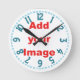 This template provide a simple clock face with numbers. Simply add your own image to the centre. You can add any image you like, but the ideal size is a horizontal image 2500 x 2500 pixels. Check out our other clocks to see other colours and designs, or to see some finished clocks made up.