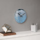 Photograph of two Western Grebes (shore birds) swimming close together in the calm waters of a harbour . The white necks and black heads are very distinctive as the birds sit within the numerals on the clock face. Numerals are in white with a drop shadow.
