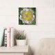 CLOCK/ WHITE PEONY WITH YELLOW CENTER. SQUARE WALL CLOCK