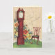 A get well soon card adorned with vintage clocks. A grandfather clock stands on the front with beautiful flowers surrounding it. On the inside is five other clocks all with special sayings. All card designs are at least 55 years old, and are digitally recreated for todays use. Check out it's matching postage.