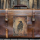 Raven on stone tile background. Clock gears all around border.