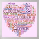 This clogging poster features a word art collage in the shape of a heart. It lists common clogging steps as well as words like "clogger", "clog dance" and "clogging." The font style is retro. This design was meticulously made one word at a time, by a lover of clogging, of course! It's a unique poster for the avid clogger.