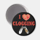 The "I Love Clogging" classic on a round black magnet with a fancy heart and a pair of clogging shoes in white. Great for the clog dancer in your life to display on the refrigerator.