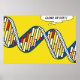 A whimsical cartoon of a DNA double helix imitating the style of 20th century artist Roy Lichtenstein.