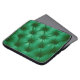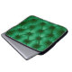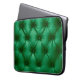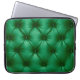 Close up background texture of dark green capitone laptop sleeve