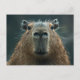 This captivating image offers a close-up portrait of a capybara, highlighting its intricate facial features. The animal's fur is wet, with droplets delicately clinging to its whiskers, suggesting a recent dip in water. Its soft, dark eyes look directly at the camera, exuding a calm yet curious demeanour. The textured fur and prominent snout are captured in remarkable detail, showcasing the natural beauty of this gentle creature. The blurred background enhances focus on the capybara's expressive face, creating a powerful and intimate wildlife moment.