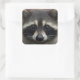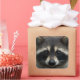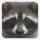 A stylised photograph of a young racoon's cute masked face staring out at the viewer intently and with intelligence. Began with my own original wild life photograph which I worked on to simplify and stylise the detail slightly.
