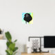 A digital art piece of an adorable crow staring straight at the camera amongst a vibrant patterned background