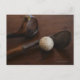 Close up of antique golf clubs and golf ball postcard