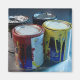 Close-up of four paint cans magnet