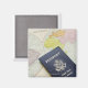 Close-up of passport lying on map magnet