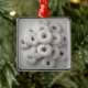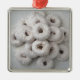 Close-up of powdered doughnuts in a plate metal tree decoration
