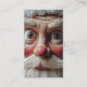 A highly detailed close-up of a Santa Claus figurine with wide, expressive eyes, rosy cheeks, and a bright red nose. The textured details of the beard and skin create a lifelike and whimsical representation, capturing a moment of wonder or surprise.
