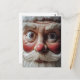 A highly detailed close-up of a Santa Claus figurine with wide, expressive eyes, rosy cheeks, and a bright red nose. The textured details of the beard and skin create a lifelike and whimsical representation, capturing a moment of wonder or surprise.