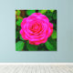 A vibrant pink rose captured in full bloom, surrounded by lush green leaves. The striking colours and intricate petal details evoke feelings of beauty, elegance, and natural vibrance.