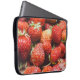 Close-up view on fresh summer strawberry with vint laptop sleeve