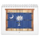 A large closed wooden barn double door with bolt and hinges and the South Carolina state flag painted on