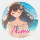 Closed Eyes Girl & Straw Hat Girl Classic Round Sticker