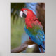 Profile portrait green-winged macaw (Ara chloroptera) perched on branch