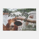 Get close-up and personal with this longhorn steer painted in an impressionist style. Rust orange, grey, white and green blur together to create this lovely portrait of our state cow. The word "howdy" greets your guests. Personalise with your family name or message at the bottom. Matching products available.