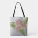 This beautiful cloth tote bag features a beautiful frangipani floral design in soft pink,yellow and green hues.
