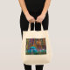 The printing came out very well, better than I had anticipated. The natural color fabric is sturdy with strong seams and comfortable handles. This tote fits easily over my shoulder. As it is filled, the bottom flattens out--very cool! I would buy this product again. This grocery tote holds a lot of groceries! The image quality was very good. The colors were a little darker than I had expected. The darkness may have been due to printing on a natural color fabric rather than on white. The cat design is attractively centered on the tote. The spirit of the design is very lively, just as it appears on the Zazzle website.