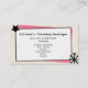 A business card perfect for a clothing store or boutique. Card features an illustration of a pink and leopard print dress form. Dress form is surrounded by decorative stars. Personalise the text on front and back.